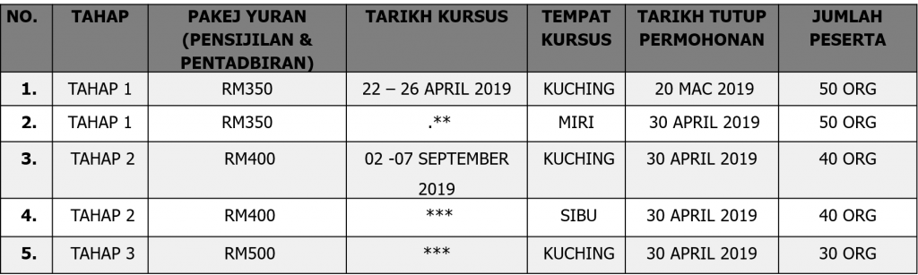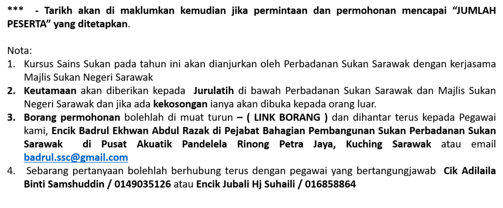 Tarikh dan Kadar Baharu Kursus Sains Sukan Tahun 2019