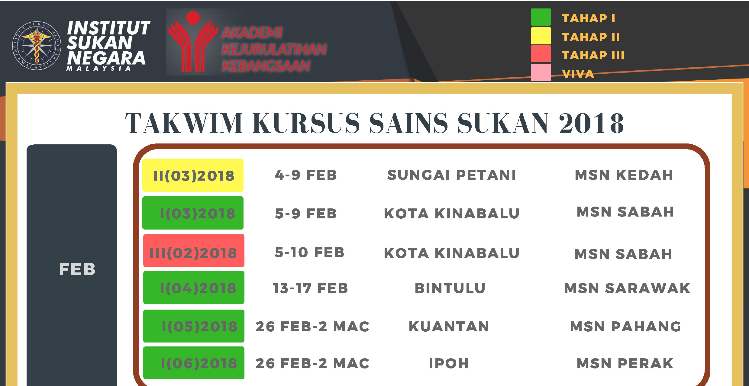 PENETAPAN KADAR BARU PENYERTAAN TAKWIM KURSUS SAINS SUKAN BAGI TAHUN 2018