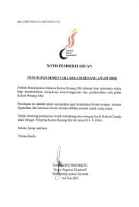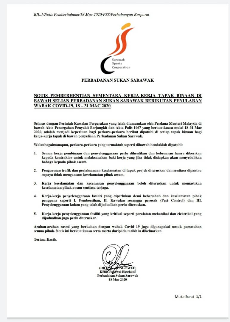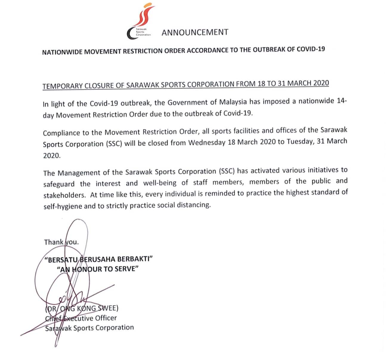 for more info pls click here>> Temporary Closure of Sarawak Sports Corporation (SSC)